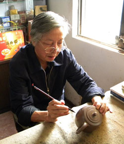 【容量】320cc 【作者】張建生 - 工藝美術師 【刻繪】李盧春,字逸舠(國家級工藝美術師) 【成型】全手工制作,證書齊全 作者親制,支持視頻認證,確保正品; 六方 · 壺型簡介![]() 六方是根據幾何造型創作而來的紫砂器型,其形體明快挺秀,具有陽剛之氣,棱角清晰,將方器的幾何之美塑造得十分的漂亮,六方亦是經典方器款型,每款六方造型都達到了方器“線條流暢,輪廓分明,平穩莊重”的規則要求。從早期的六方大彬壺到歷史悠久的僧帽壺,再到經典器型的雪華壺,無不一展示了方器“以直線、橫線為主,曲線、細線為輔,器型的中軸線、平衡線要正確、勻挺、富于變化”的器型特點。六方器型依據幾何造型,雖然器型表面看似簡單,卻做工精細,需要有深厚的制作技術方能將方器的精髓把握住,六方便是將方器的精髓之處把握得恰如其分。 底槽青· 泥料簡介![]() 簡介:底槽青,產于江蘇宜興黃龍山系,紫泥原礦大致可分:頭槽、二槽青、底槽青等三類,本名泥產于紫泥最底層,質量之佳,為歷代陶人推崇之首,亦為數百年來經典名器,及已故顧景舟大師最鍾愛之名泥;此泥礦名稱,因宜興產地方言沿用已久,為恐溷淆,故用其音直譯文字,以“底槽青”名之。最早產于黃龍山四號井,后來是黃龍山五號井和臺西礦。由于產于紫砂最底層,質地特純,泥質細膩、成色穩重,呈棕色,在近代制壺名家廣泛使用。 猜您喜歡