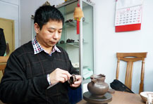 【容量】370cc 【作者】莊玉林 - 研究員級高級工藝美術師 壺式為莊玉林專利原創,壺體六方,塊面之間線條挺中有圓,壺肩上收至壺口減小,呈曲線運動;下放稍外撇的弧線收于壺底;壺體陶刻書法裝飾,整壺形似鐘,飲茶提神,敲鐘聲入耳亦破睡,銘文切壺、壺名切意,可品讀可瀹茶! 六方 · 壺型簡介![]() 六方是根據幾何造型創作而來的紫砂器型,其形體明快挺秀,具有陽剛之氣,棱角清晰,將方器的幾何之美塑造得十分的漂亮,六方亦是經典方器款型,每款六方造型都達到了方器“線條流暢,輪廓分明,平穩莊重”的規則要求。從早期的六方大彬壺到歷史悠久的僧帽壺,再到經典器型的雪華壺,無不一展示了方器“以直線、橫線為主,曲線、細線為輔,器型的中軸線、平衡線要正確、勻挺、富于變化”的器型特點。六方器型依據幾何造型,雖然器型表面看似簡單,卻做工精細,需要有深厚的制作技術方能將方器的精髓把握住,六方便是將方器的精髓之處把握得恰如其分。 清水泥· 泥料簡介![]() 簡介:本泥因視之古樸,經長期使用后老味濃厚,又乃古代陶人最喜使用,為流傳較多傳器之泥料,故以清水泥名之;乃作與賞二者最推崇之泥料。泥性:干濕易掌握,穩定性高,黏性合理,成型較易。陳泥須回煉,否則易生黑邊、花泥,提煉時須留意氧化鐵及石灰質之剔除。清水泥為純種紫泥礦,宜興陶者呼之“普泥”,為較常見之泥料;良者稀而貴,劣者多而廉;玩家習稱“紅紫泥”,乃作與賞二者最推崇之泥料。 猜您喜歡 |